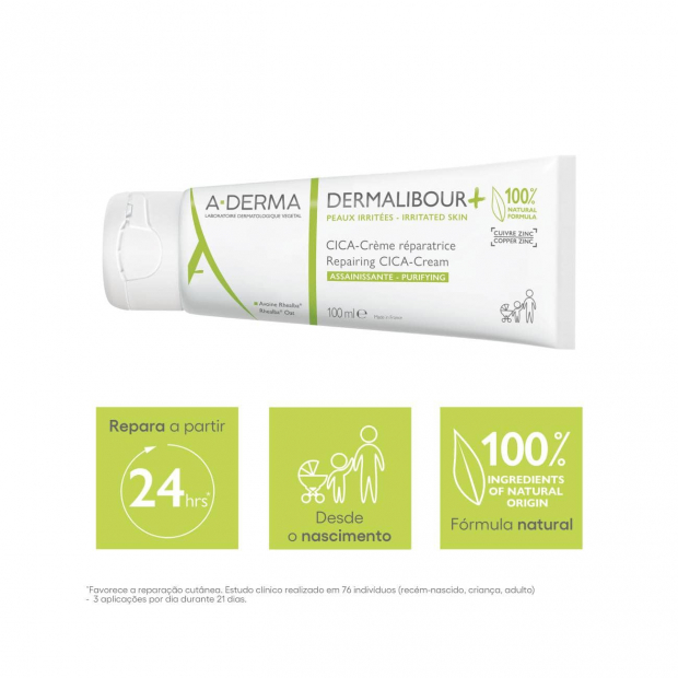 A-Derma Dermalibour+ Cica Creme tem uma fórmula ultra suave com 100% de ingredientes de origem natural.