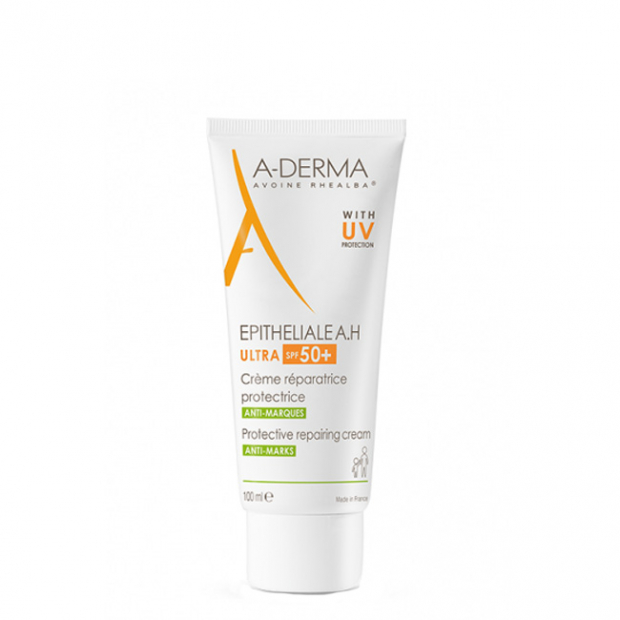 A-Derma Epitheliale AH Ultra Creme SPF50+ é um creme ultra-reparador com índice de proteção solar para um efeito anti-marcas.