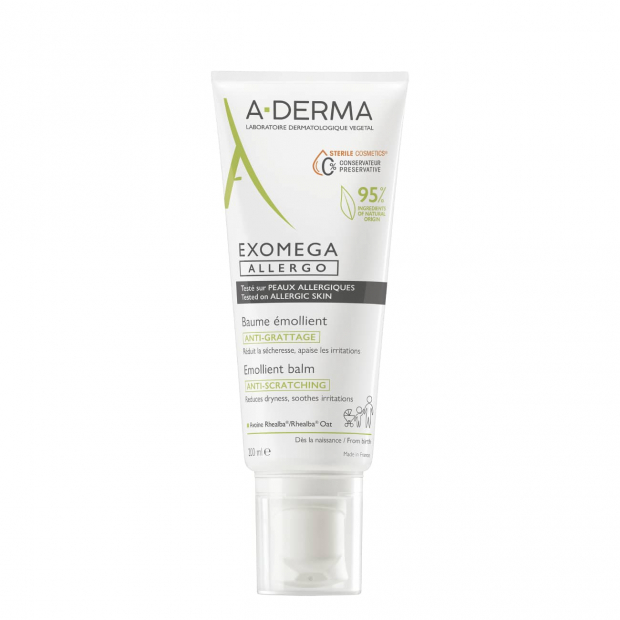 A-Derma Exomega Allergo Bálsamo Emoliente tem uma textura híbrida, que espalha como um creme mas nutre como um bálsamo, rica em: