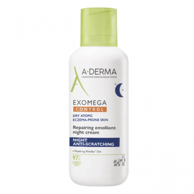 A-Derma Exomega Control Creme de Noite tem uma fórmula suave com 97% de ingredientes de origem natural.
