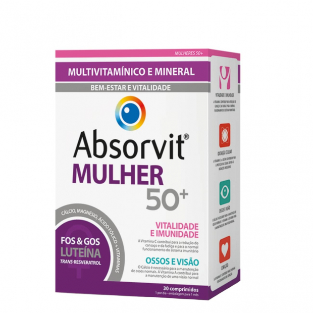 Se procuras um suplemento completo para apoiar a tua saúde e vitalidade após os 50 anos, o Absorvit Mulher 50+ Comprimidos é perfeito para ti!