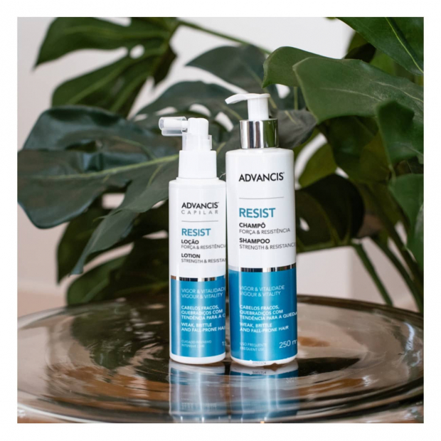 Fortalece o teu cabelo frágil e quebradiço com Advancis Capilar Resist Loção Força e Resistência.