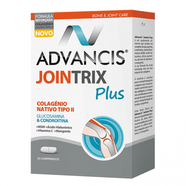 Advancis Jointrix Plus é um suplemento alimentar em comprimidos, formulado com: