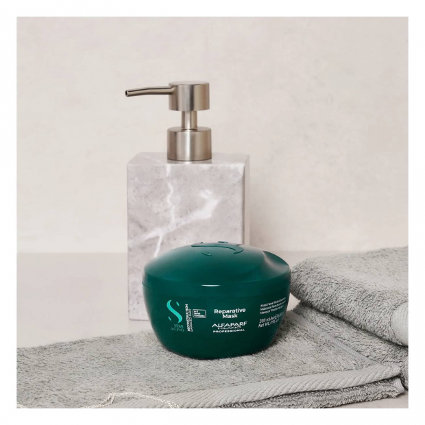 Alfaparf Semi Di Lino Reconstruction Reparative Mask tem uma textura rica, uma fragrância cítrica, floral e amadeirada maravilhosa e uma combinação de ingredientes única.