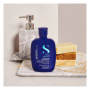 Alfaparf Semi Di Lino Brunette Anti-Orange Shampoo tem uma textura suave e com cor azul, numa fórmula que inclui: