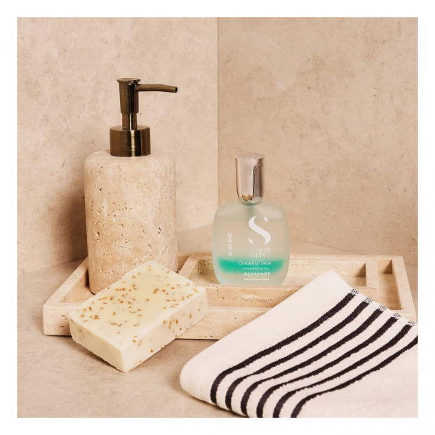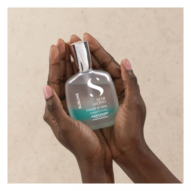 Alfaparf Semi Di Lino Sublime Sérum Cristalli Di Seta tem uma textura leve com uma fórmula rica em ingredientes que realçam a beleza natural do cabelo.