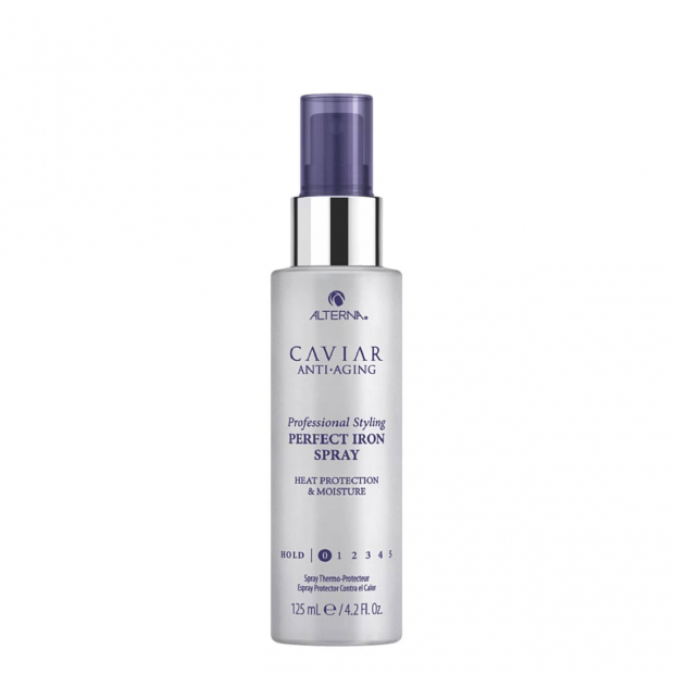 Alterna Caviar Professional Styling Perfect Iron Spray tem uma textura leve não oleosa e uma fórmula rica em ingredientes naturais obtidos de forma sustentável.