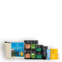Este conjunto contém 2 esfoliantes de alperce, 2 máscaras hidratantes e suavizantes de aloé vera, 2 máscaras de olhos de gingko biloba, um gel de limpeza suave, um gel-creme hidratante e um óleo de rosto nutritivo.