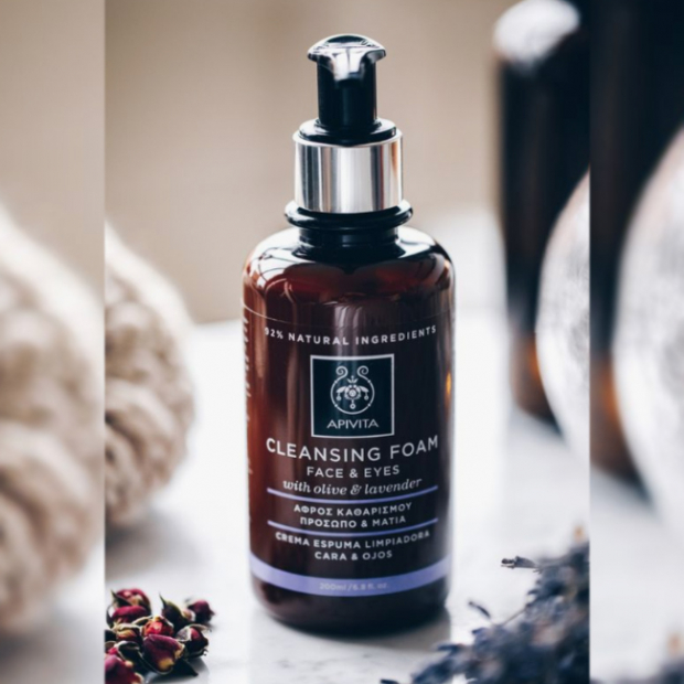 Apivita Espuma de Limpeza tem uma base lavante rica, formulado com ingredientes naturais (92%): saponária, oliva, lavanda, própolis, pantenol e infusão de chá verde, para uma ação de limpeza suave, anti-irritante, antissética, suavizante, antioxidante e protetora. A pele fica perfeitamente limpa, mais suave e protegida.