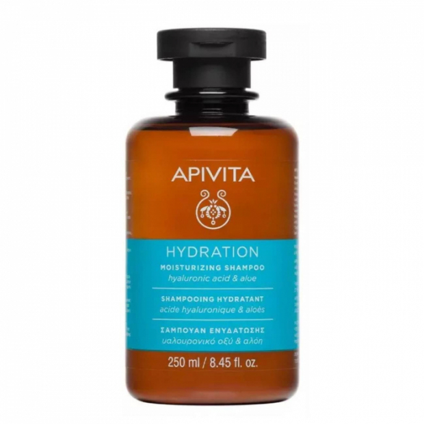 - Apivita Shampoo Hidratante com uma base lavante rica, formulado com 87% de ingredientes naturais
