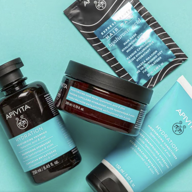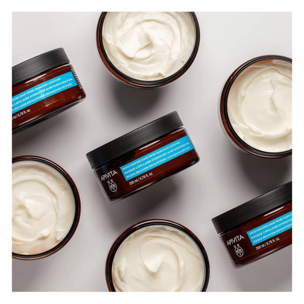 Apivita Máscara Capilar Hidratante tem uma textura leve e uma fórmula com 97% de ingredientes de origem natural: