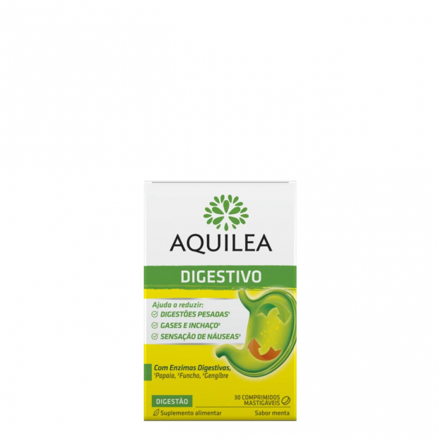 Aquilea Digestivo contém extrato de papaia, enzimas digestivas e extrato de funcho que, em conjunto, ajudam no bem-estar digestivo e na redução do inchaço causado por gases.