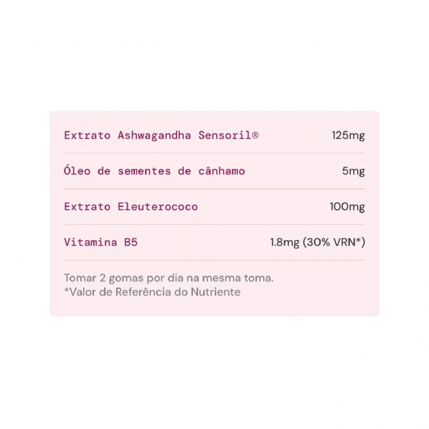 - Contém Ashwagandha e ómega-6, que ajudam a reduzir os níveis de stress