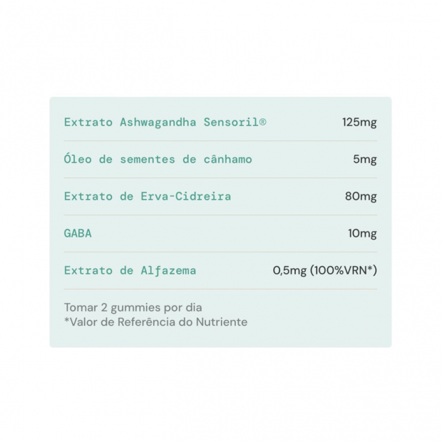 Este suplemento alimentar em forma de gomas proporciona uma sensação de calma e relaxamento, ajudando a melhorar os níveis de energia e vitalidade.