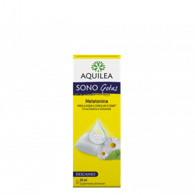 Aquilea Sono Gotas tem uma fórmula que combina extrato de camomila, erva cidreira e melatonina.