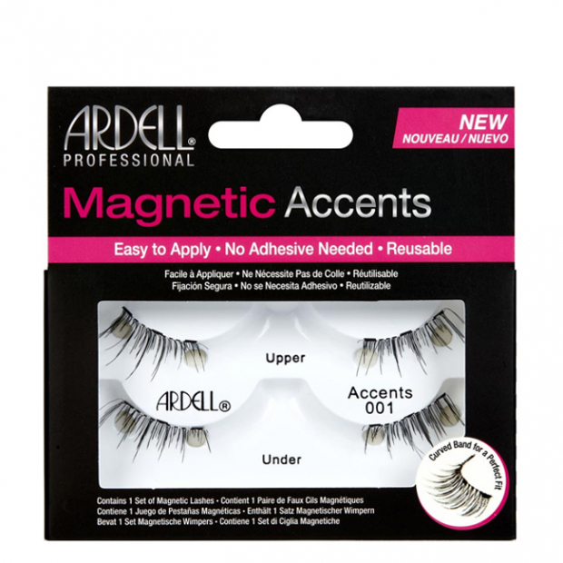 Ardell Magnetic Accent 001 são feitas de cabelo natural, em formato alargado e com a banda Invisiband®, mais fina, para um efeito invisível e confortável.