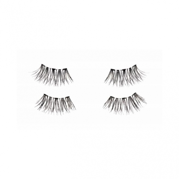 De aplicação magnética, proporcionam uma fixação segura, sem cola. Mais curtas no canto interno e alongadas no exterior, com metade da largura de uma pestana normal. Estilo cruzado, com uma banda curva e fina, para uma adaptação e conforto ótimos. Tom preto.