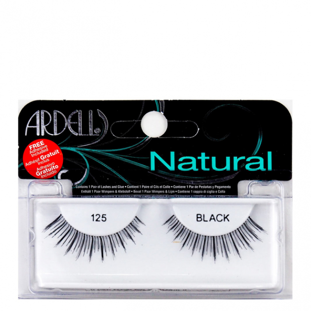 Ardell Natural Black 125 são pestanas falsas arredondadas, de corte suave e volume leve, para um look casual.