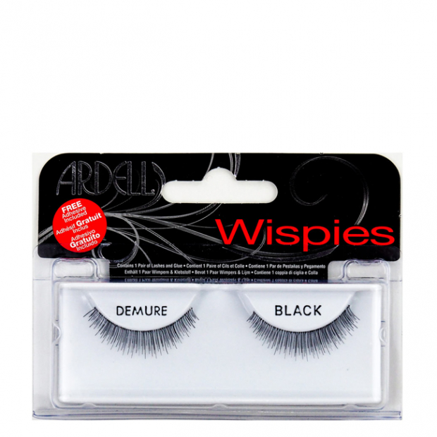 Ardell Wispies Demure Black são pestanas falsas arredondadas, de corte suave e volume leve, para um look natural.