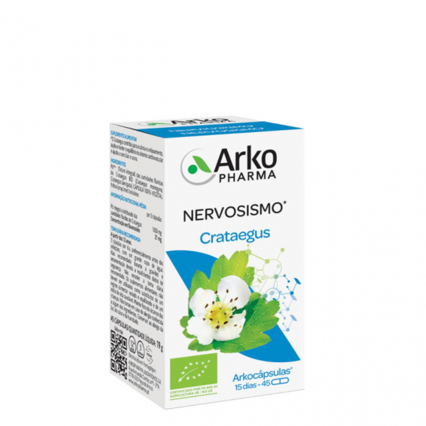 Arkopharma Crataegus é um suplemento alimentar em cápsulas que contribui para diminuir a tensão, irritabilidade e conciliar o sono.