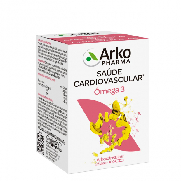Arkopharma Ómega 3 é um suplemento alimentar em cápsulas que contribui para o normal funcionamento do coração e cerebral.