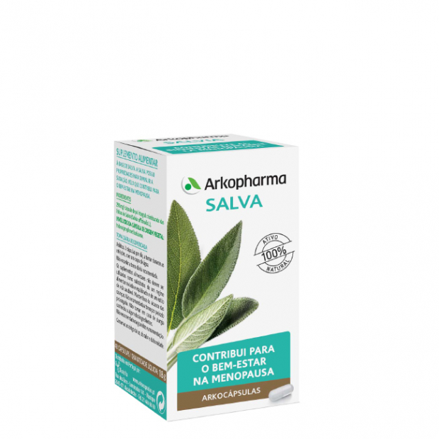 Arkopharma Salva contém 290mg de pó integral criotriturado das folhas de Salva (Salvia officinalis L). As cápsulas são formuladas à base de Arkototum Integral, um sistema de formulação criado pela Arkopharma, que permite restituir 100% dos princípios ativos das plantas, conservando todas as suas qualidades.