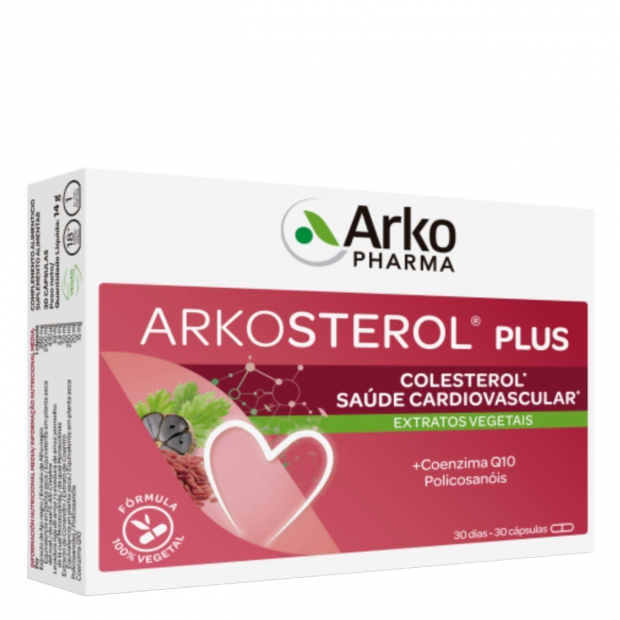 Arkosterol Plus é um suplemento alimentar que contribui para a manutenção dos níveis normais de colesterol no sangue.