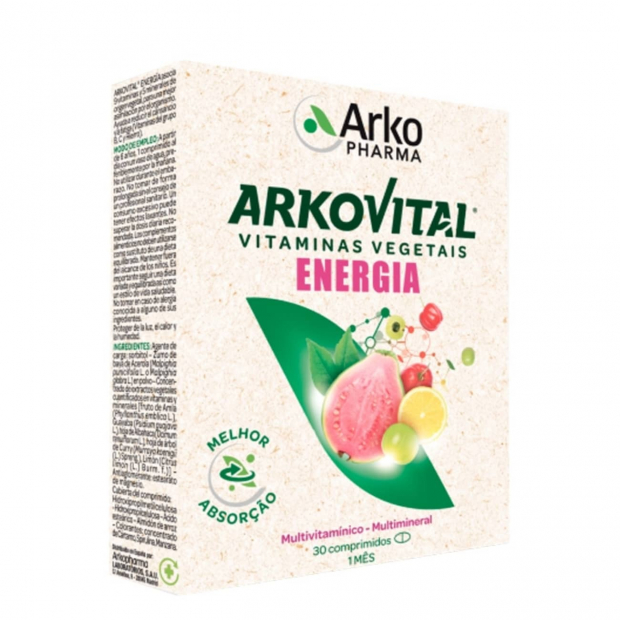 Arkovital Energia contém uma associação de vitaminas e minerais de origem 100% vegetal.