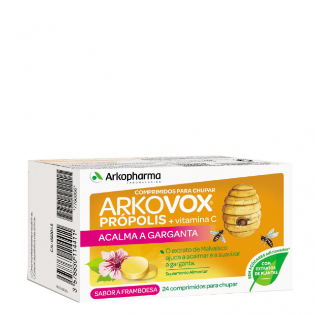 Arkovox Pastilhas Própolis e Vitamina C são comprimidos para chupar que ajudam a suavizar e a acalmar a dor de garganta, faringe e cordas vocais.