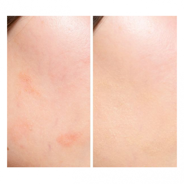 Com um aplicador em pincel, proporciona uma aplicação precisa e um efeito resistente à água. Em tom verde subtil, combate a vermelhidão, enquanto minimiza a aparência de manchas e imperfeições.