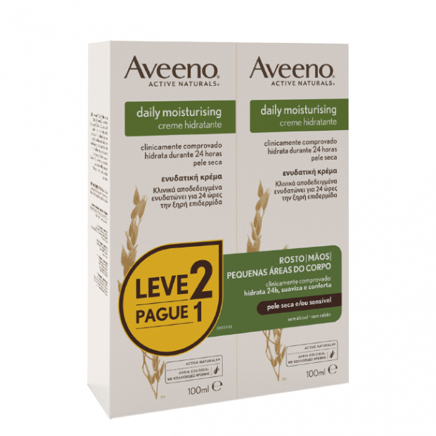 Aveeno Duo Cream é um kit com 2 embalagens de creme hidratante e calmante (2x100ml) para pele seca, sensível e irritada.
