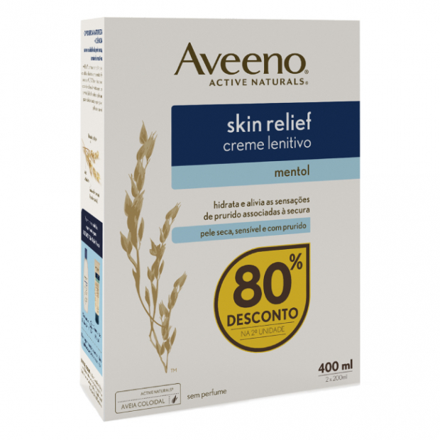 Aveeno Skin Relief Duo é um pack que contém 2 embalagens de creme emoliente corporal, com efeito refrescante.