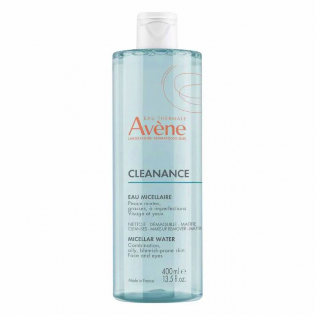 Aplica Avène Cleanance Água Micelar na pele do rosto, com a ajuda de um disco de algodão. Se necessário, vaporiza o rosto com um pouco de Água Termal de Avène.