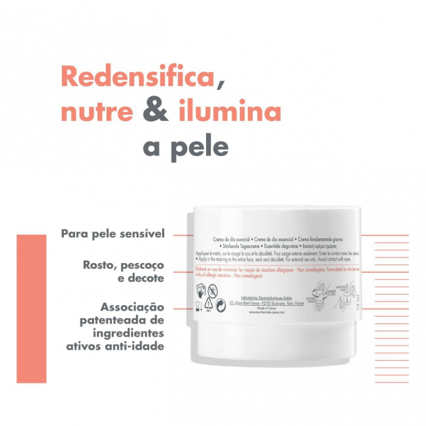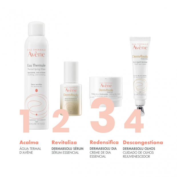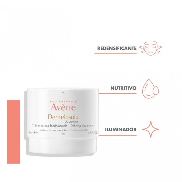 Avène DermAbsolu Creme é um creme de dia anti-idade que combate os principais sinais de idade, enquanto hidrata, redensifica, redefine, regenera e ilumina a pele.