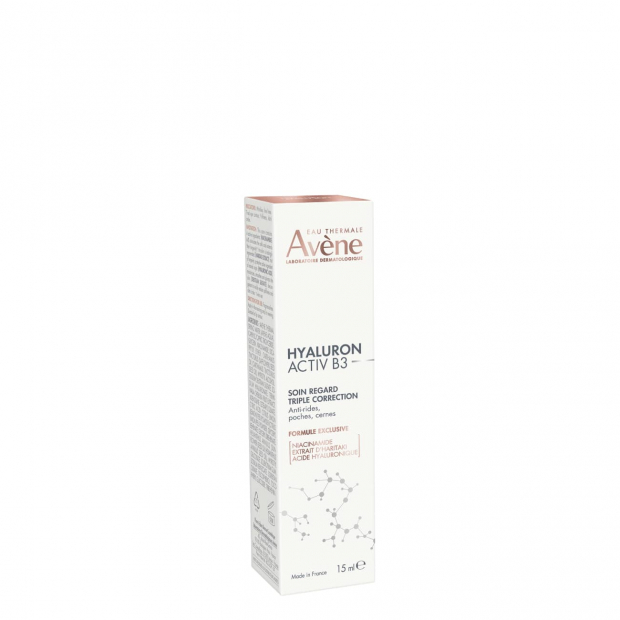Avène Hyaluron Activ B3 Creme Contorno Olhos tem uma textura leve e com um efeito fresco intenso, com os seguintes ingredientes: