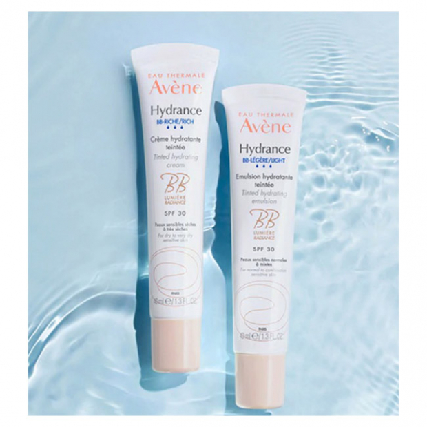 Avène Hydrance BB SPF30 Emulsão Ligeira é uma emulsão leve, hidratante, com cor, de uso diário, especialmente formulado para pele sensível, normal a mista. A sua formulação possui propriedades hidratantes que ajudam a restaurar a barreira protetora da pele, prevenindo a desidratação. Com cápsulas seboabsorventes, que absorvem o excesso de oleosidade da pele, deixando-a com um aspeto mate e sem brilho. Com FPS30 protege a pele das agressões solares. Com uma textura suave, não oleosa e de rápida absorção, hidrata em profundidade e de forma prolongada conferindo uma sensação de conforto imediato à pele. Sem parabenos. Hipoalergénico. Não comedogénico.