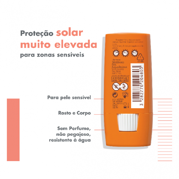 Este stick de proteção solar para zonas sensíveis, como lábios e cicatrizes é especialmente indicado para para pele muito clara e na prevenção de fotodermatoses.