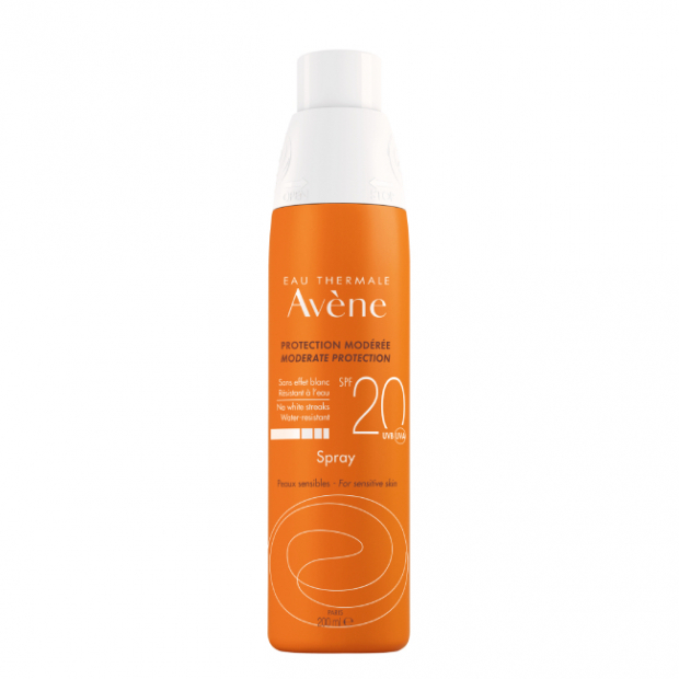 Avène Solar SPF20 Spray é um spray, que ajuda a hidratar e proteger a pele com os efeitos nocivos do sol. Hidrata suavemente e previne contra o fotoenvelhecimento. Proporciona proteção solar média (FPS20) e protege contra as agressões externas diárias. Resistente à água. De rápida absorção, não bloqueia os poros. Ideal para pele clara, sensível e intolerante ao sol. De elevada tolerância, sem parabenos.