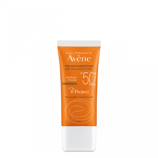 Avène Solar SPF50+ B Protect tem uma textura fundente, com uma combinação de filtros UV, pigmentos micro-encapsulados e água termal, para uma ação protetora, corretora, hidratante, iluminadora e suavizante.