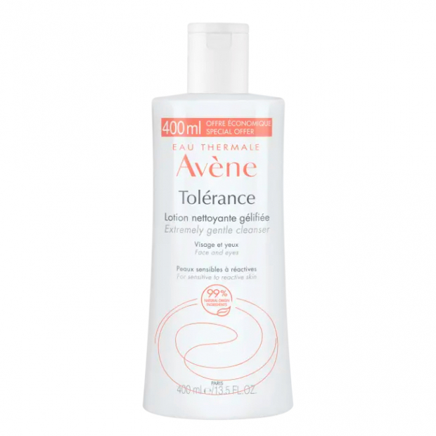 Avène Tolérance Loção de Limpeza tem uma fórmula em gel ultrassuave, de alta tolerância, rica em 99% de ingredientes de origem natural, para o máximo conforto.