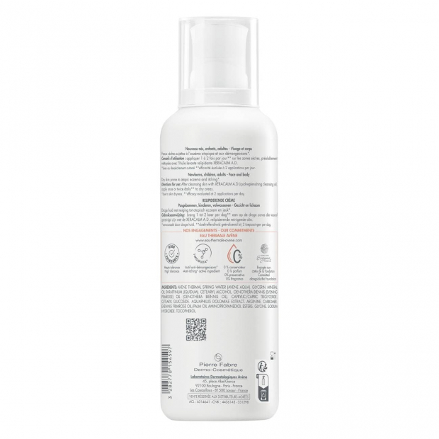 Avène XeraCalm A.D. Creme Relipidante tem uma textura cremosa e fundente, formulada com: