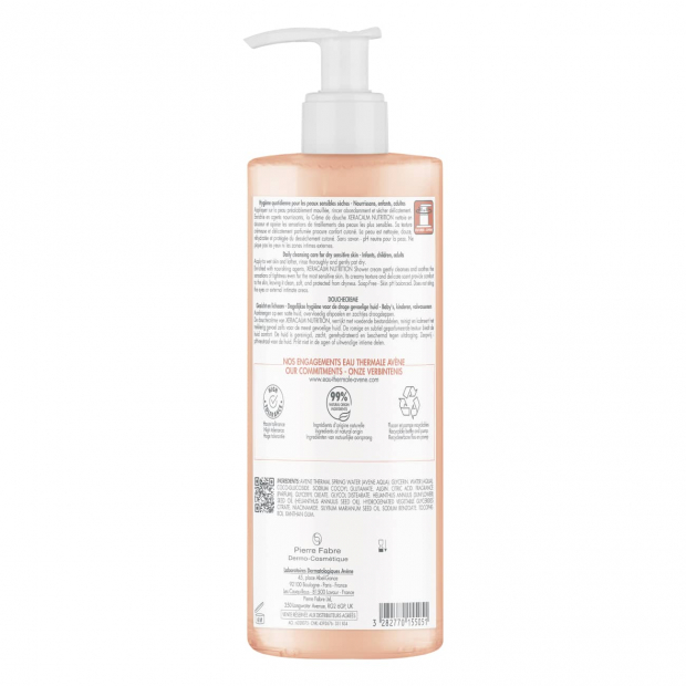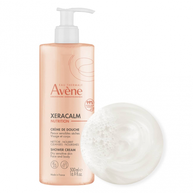 Avène Xeracalm Nutrition Creme Duche tem uma textura cremosa e sem sabão, numa fórmula biodegradável e com 99% de ingredientes de origem natural.