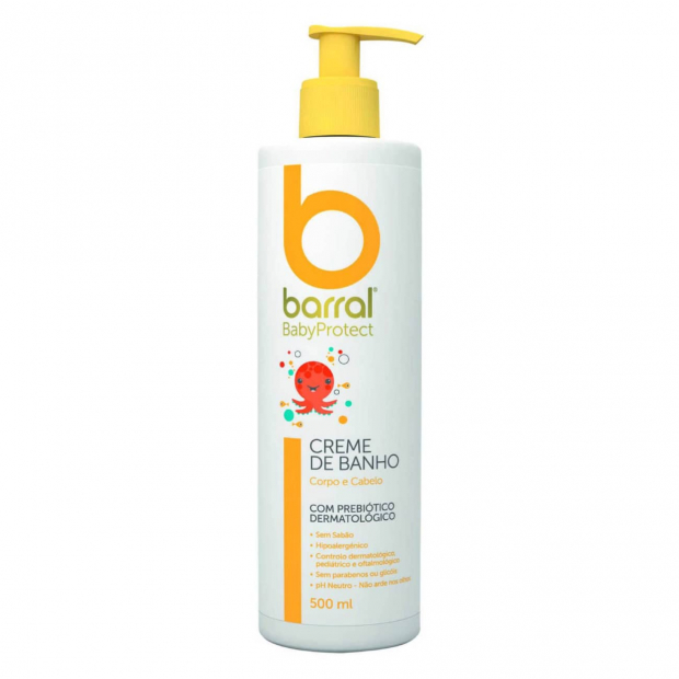 Aplica Barral BabyProtect Creme de Banho na pele e no cabelo molhados, com uma massagem suave. Enxaguar abundantemente.