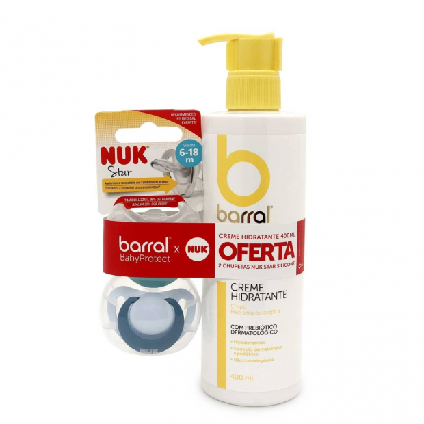 Barral BabyProtect Pack Creme Hidratante 400ml Oferta Nuk Star Chupeta 2unid.