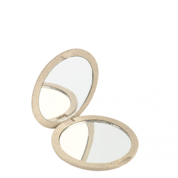 Espelho duplo, biodegradável, em formato prático e compacto.