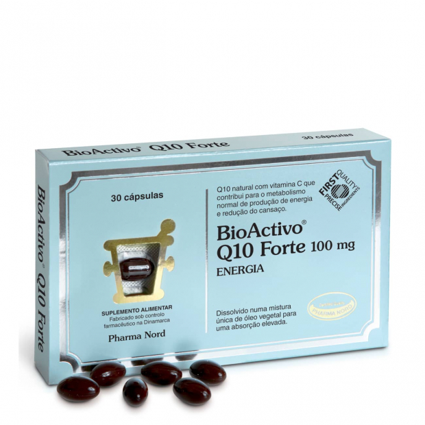 Bioactivo Q10 Forte são 30 cápsulas de Q10 e óleo de soja para a produção de energia. O Q10, existente nas células, converte proteínas, hidratos de carbono e gordura em energia, energia essa que é aproveitada pelo coração e outros músculos. Desta forma, este suplemento ajuda a combater a fadiga e a manter saudáveis os músculos, dentes e gengivas. O corpo fica mais protegido de doenças e do envelhecimento.