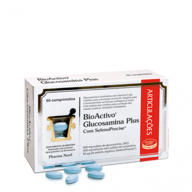 Bioactivo Glucosamina Plus Comprimidos é um suplemento alimentar, rico em em sulfato de glucosamina (2KCl), sulfato de condroitina, vitamina C e selénio, que ajudam a proteger, melhorar e manter as articulações saudáveis.