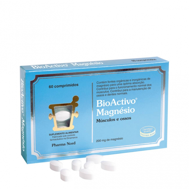 Bioactivo Magnésio é um suplemento alimentar rico em magnésio para a saúde cardiovascular, muscular e nervosa.