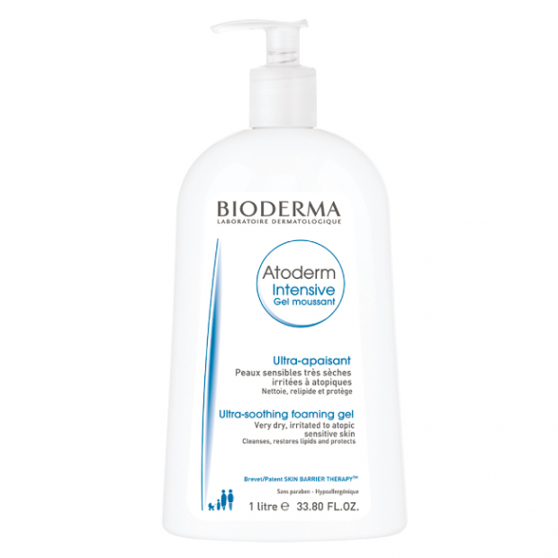 Bioderma Atoderm Intensive Moussant Gel tem uma textura em gel-espuma rica, com uma base lavante suave, complexo patenteado D.A.F. e agentes ativos apaziguantes, para para uma ação de limpeza suave, calmante, ultra-hidratante fortificante e protetora.