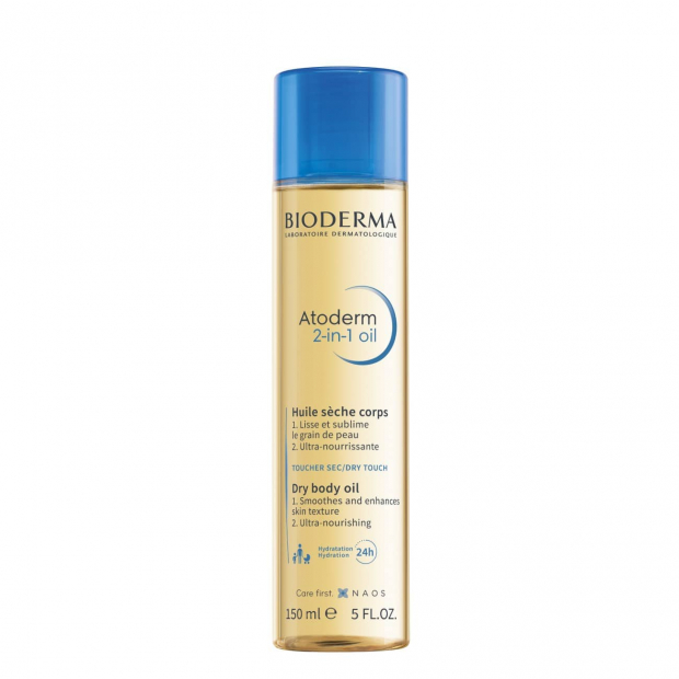 Hidrata e suaviza a tua pele seca e áspera com Bioderma Atoderm Óleo Seco Corporal 2-em-1.